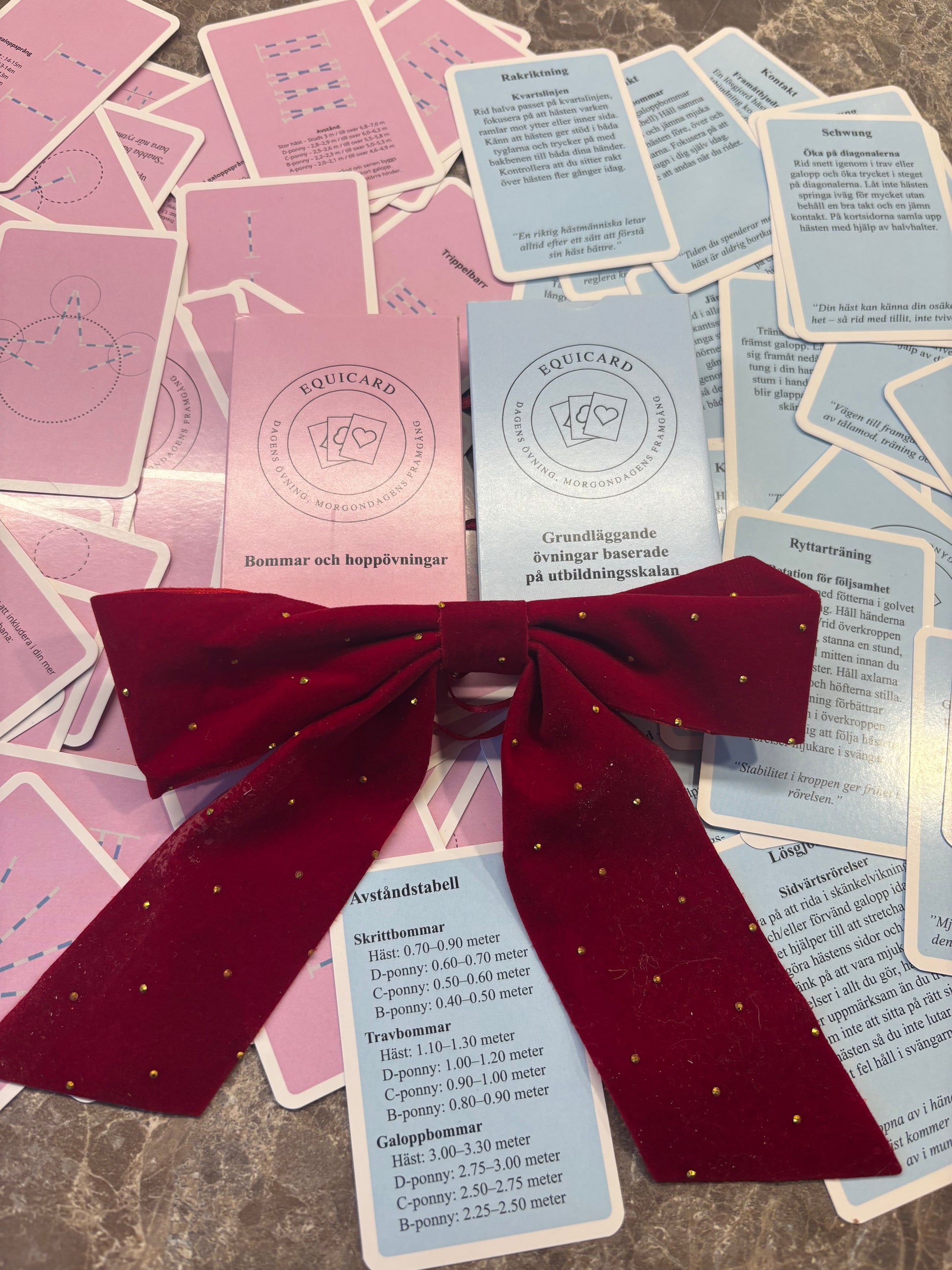 Dra ett eller flera kort inför ridpasset. Följ övningen, använd citatet som mindset och rid med tydligt fokus. Du slipper fundera på ”vad ska jag göra idag?” och får istället ett strukturerat & inspirerande pass på direkten.